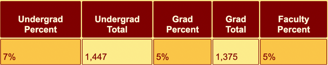 Analysis: This number is 4.5% lower than the national average of 12.5% in 2022. USCs highest enrollment of black students was in 2022 with 11% of black students, however fall 2023 marked the highest number of black students offered admission. The total number of black students enrolled overall last year was 8%, 2% higher than this year. This shift might be reflective of a broader trend of Black Enrollment declines at PWI's after the removal of affirmative action. While we do not have concrete studies on that for this year, we can look at similar examples in history to get an understanding. In 1995, the University of California (UC) Board of Regents banned race-conscious admissions which lead to a 64% drop in Black student enrollment at UC schools in the following year.Despite false stereotypes about the low number of black students enrolled in higher education, in 2022 36% of black youth ages 18-24 were enrolled in college which is only a 2% deviation from the national average. Additionally, according to findings compiled by the National Center for Education Statistics, black women were the most educated population with 64.1% obtaining bachelor’s degrees, 71.5% of obtaining masters degrees and 65.9% obtaining doctoral, medical, and dental degrees.